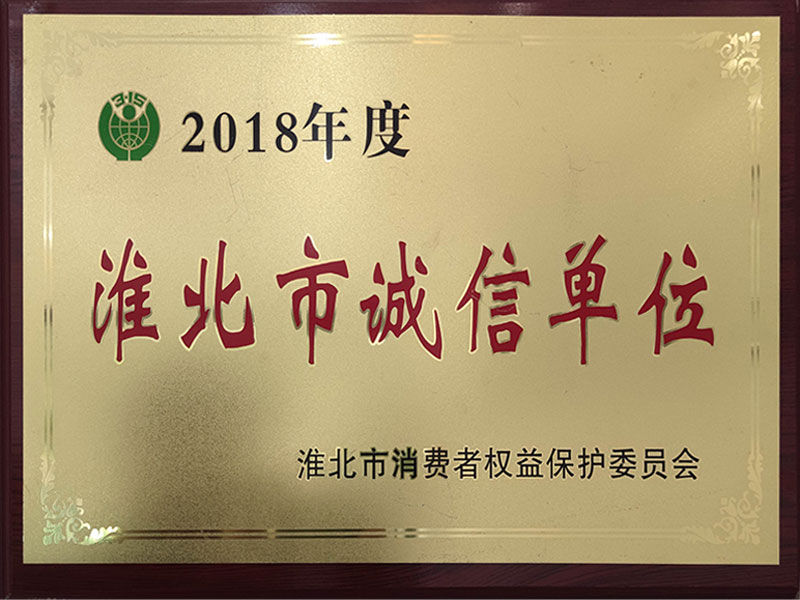 淮北市消費(fèi)者權(quán)益保護(hù)委員會(huì)頒發(fā)證書